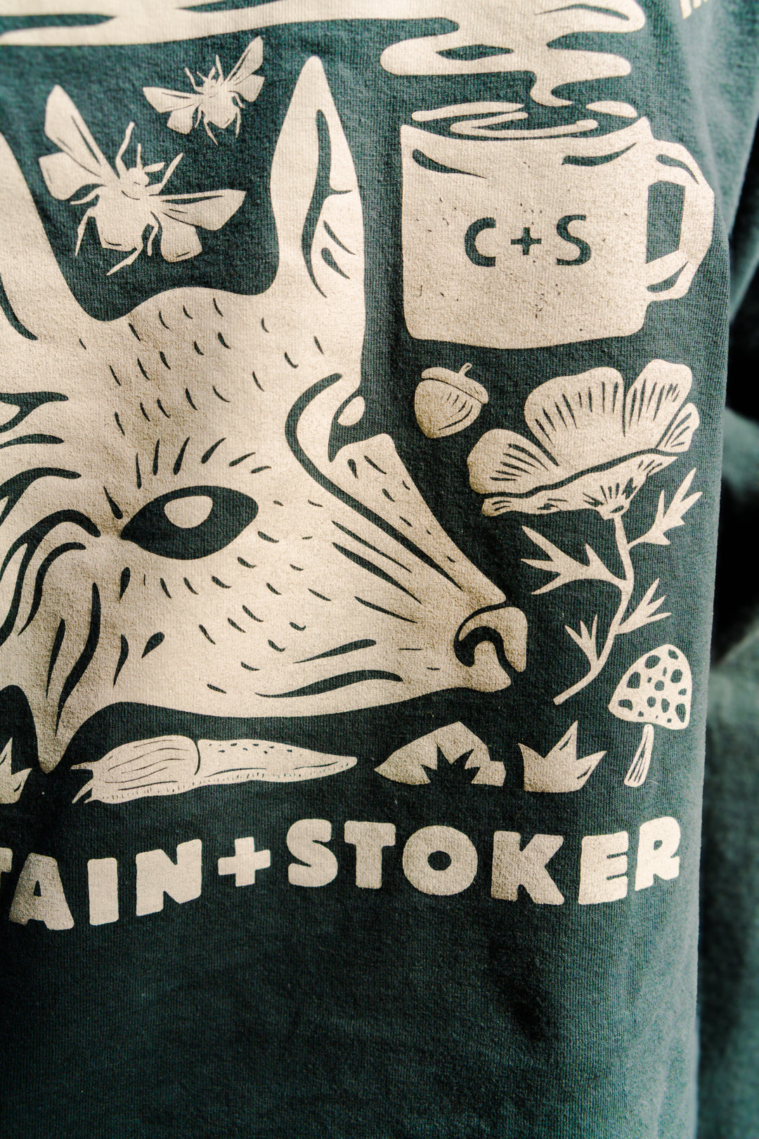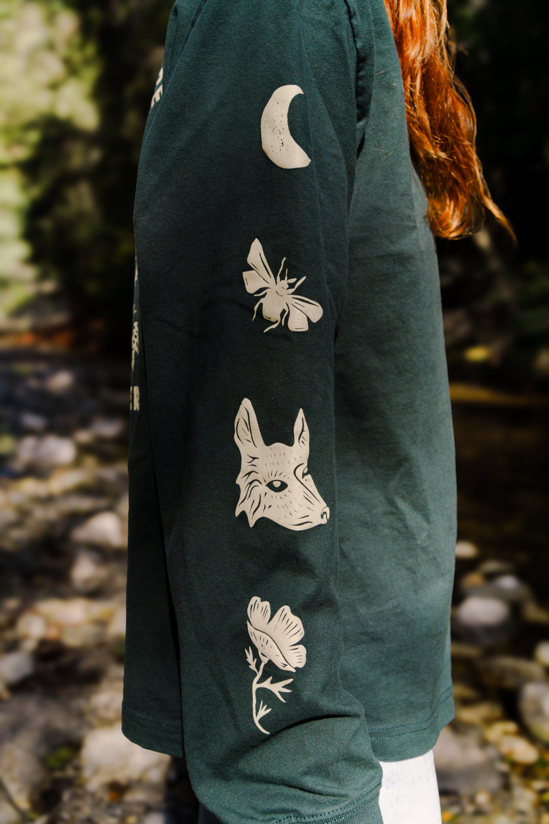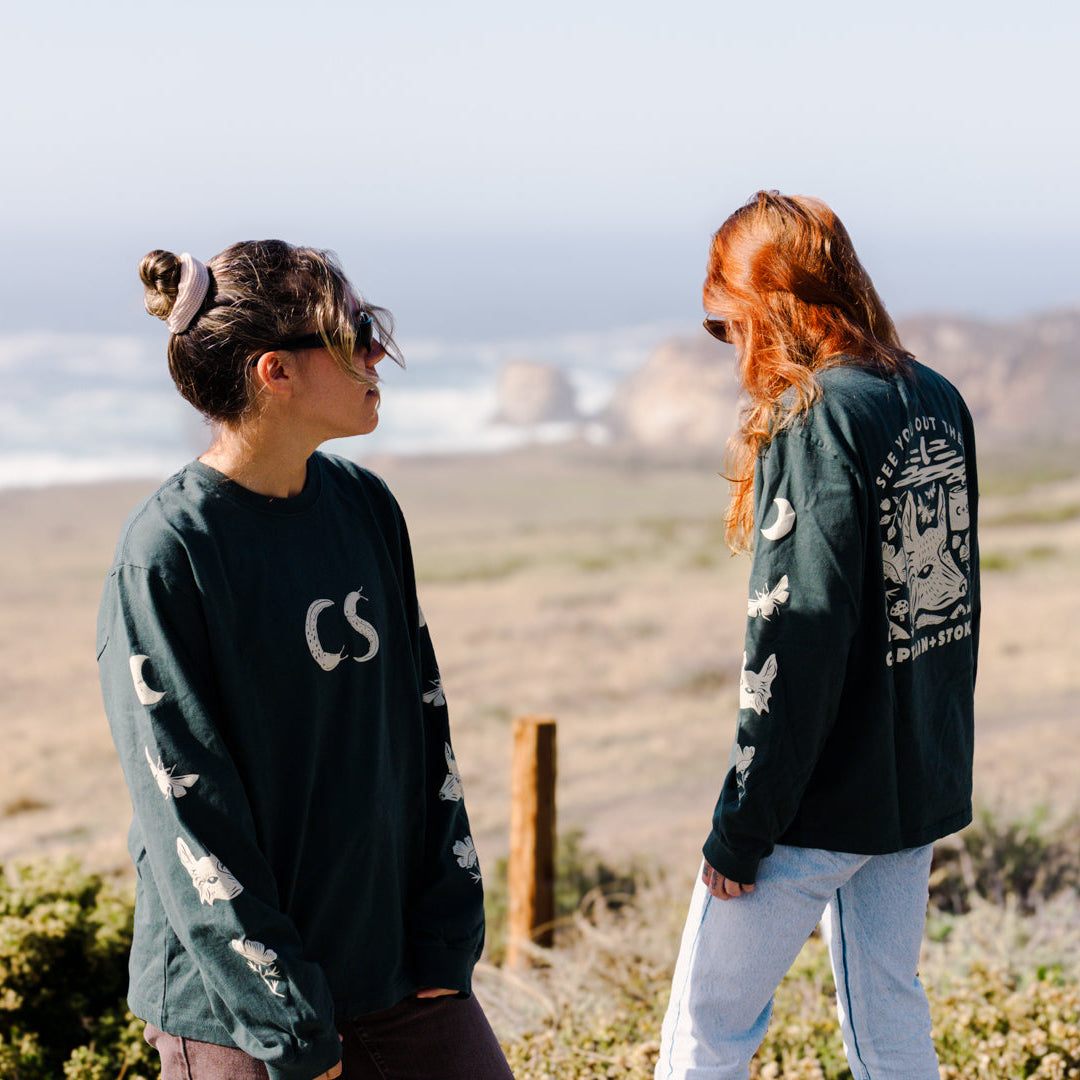 This holiday season we have a long sleeve tee in a forest green tone with elements of central coast iconic graphics. Printed on the front, back, and sleeves, there was a lot of hard work that went into these shirts, and we're so proud of how they turned out!