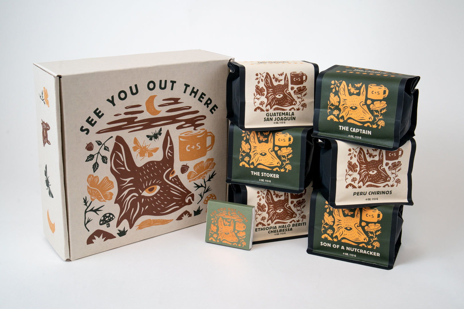 Holiday Sample Boxes are back! 6 coffees, 4oz each, and a gold foil print matchbox!