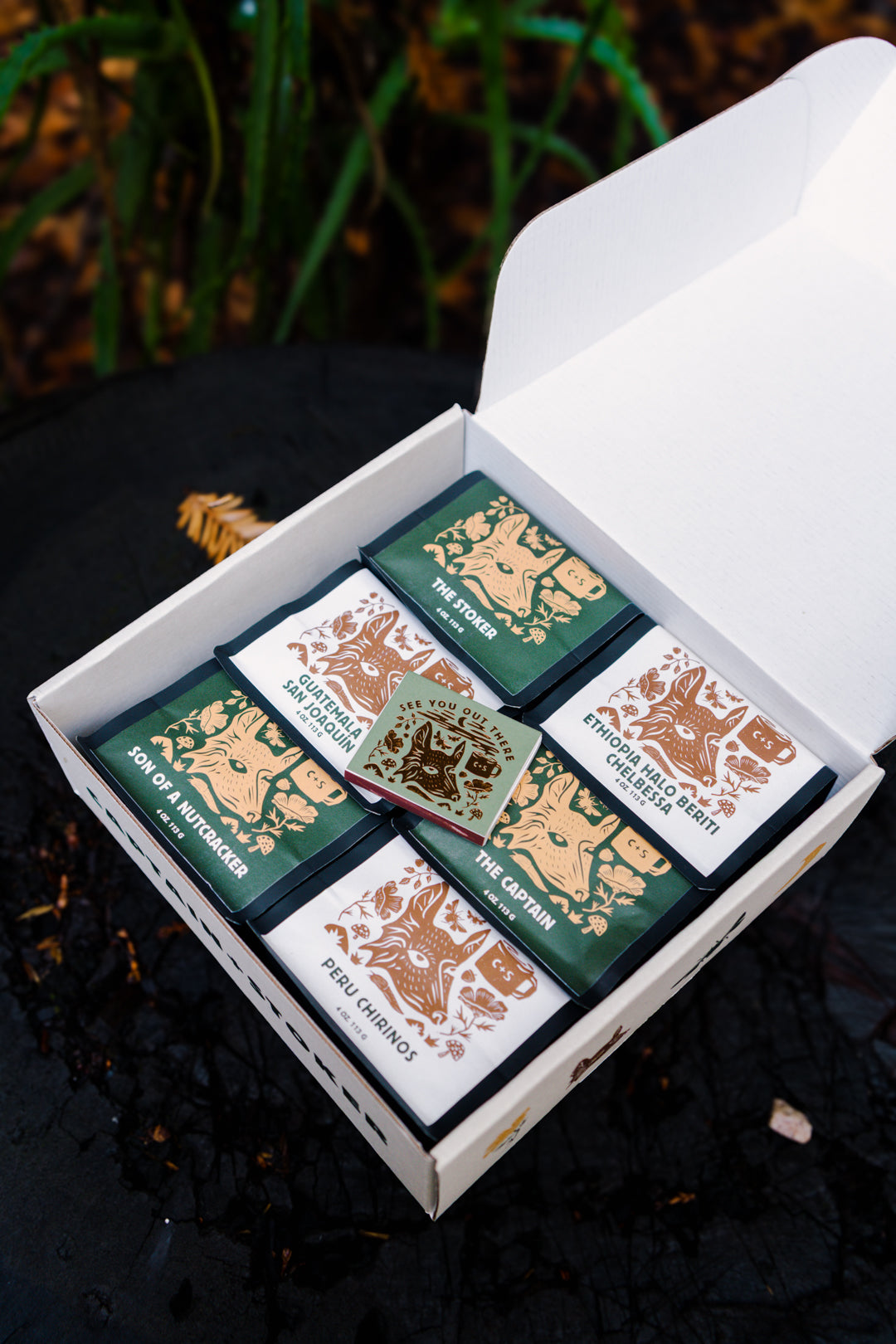 We expanded to include more coffee in our gift boxes this year, so you'll get six 4oz sample bags (three blends and three single origins) including our seasonal holiday blend and a limited availability single origin.